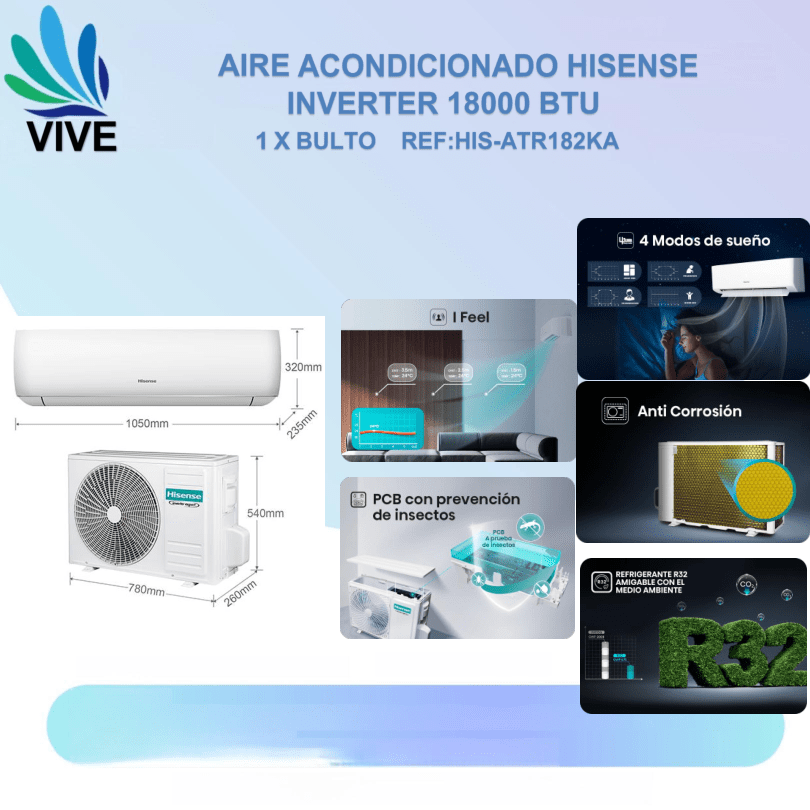 El Aire Acondicionado Hisense Inverter 18000 BTU es una excelente opción para distribuidores y vendedores al por menor que buscan un producto con alta rotación, eficiencia energética y respaldo de marca reconocida. Diseñado para ofrecer confort, ahorro y durabilidad, este equipo es ideal para hogares, oficinas y pequeños comercios.